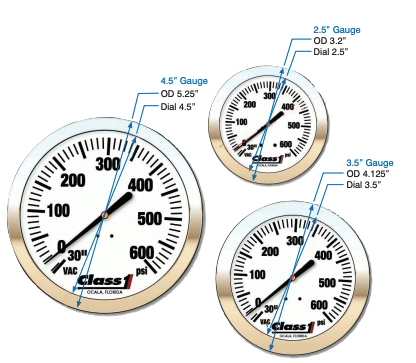 Pressure Ranges: 0-400, 30-0-400 or 30-0-600 PSI